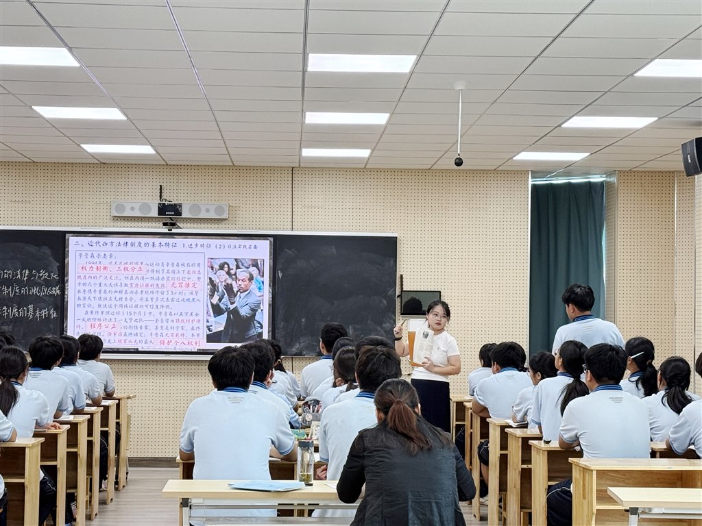 2025年9月29日历史组王玮老师开设校级公开课《第9课 两宋的政治和军事》,徐紫情老师开设校级公开课《第9课 近代西方的法律与教化》,历史教研组老师积极听课。本课基于三新背景进行教学设计,指向学生思辨能力培养的课堂建构。两位新老师均立足教材,采用多媒体教学手段,通过史料分析、创设情境、问题导学、合作探究等方法培养学生的历史学科核心素养。课后,同组教师进行评课议课,明确了两位老师课堂中的亮点与不足。
