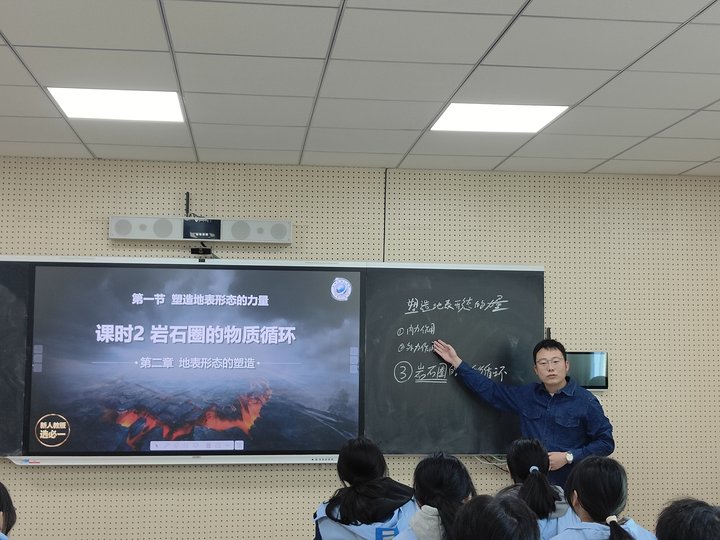 高中地理教研组郑超煜老师开设校级公开课,全组老师听课学习。