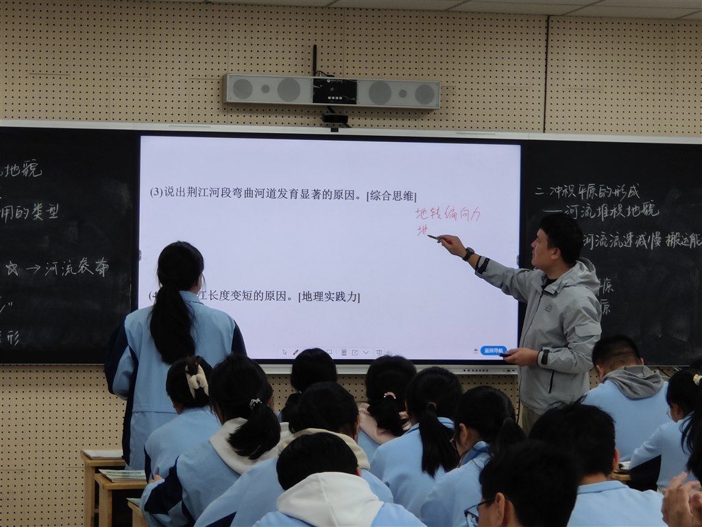 高中地理教研组袁青冬老师开设校级公开课,全组老师听课学习。
