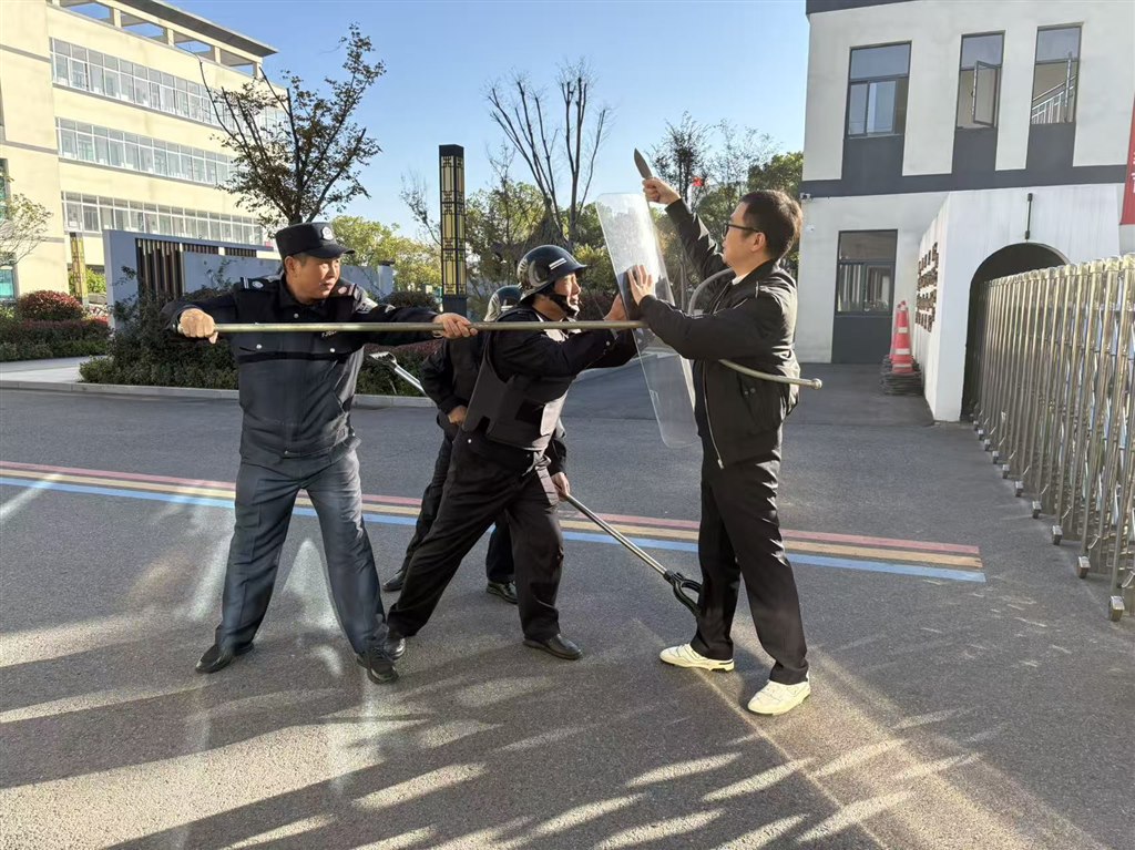演练前,学校后勤保障处提前制定了详细的演练方案,根据不同场景应该如何处置进行了明确的要求,并对学校保安及护校队成员详细讲解了盾牌、钢叉、防暴棍等器械的正确使用方法,并现场演示多人协同制敌、突发情况处置等战术要领。