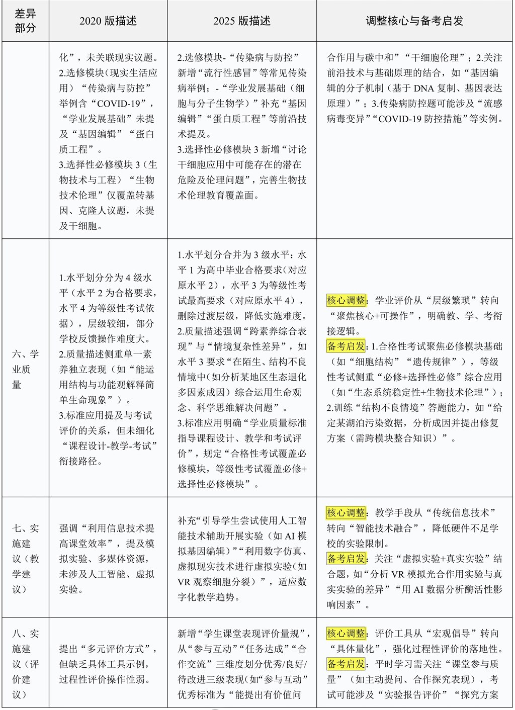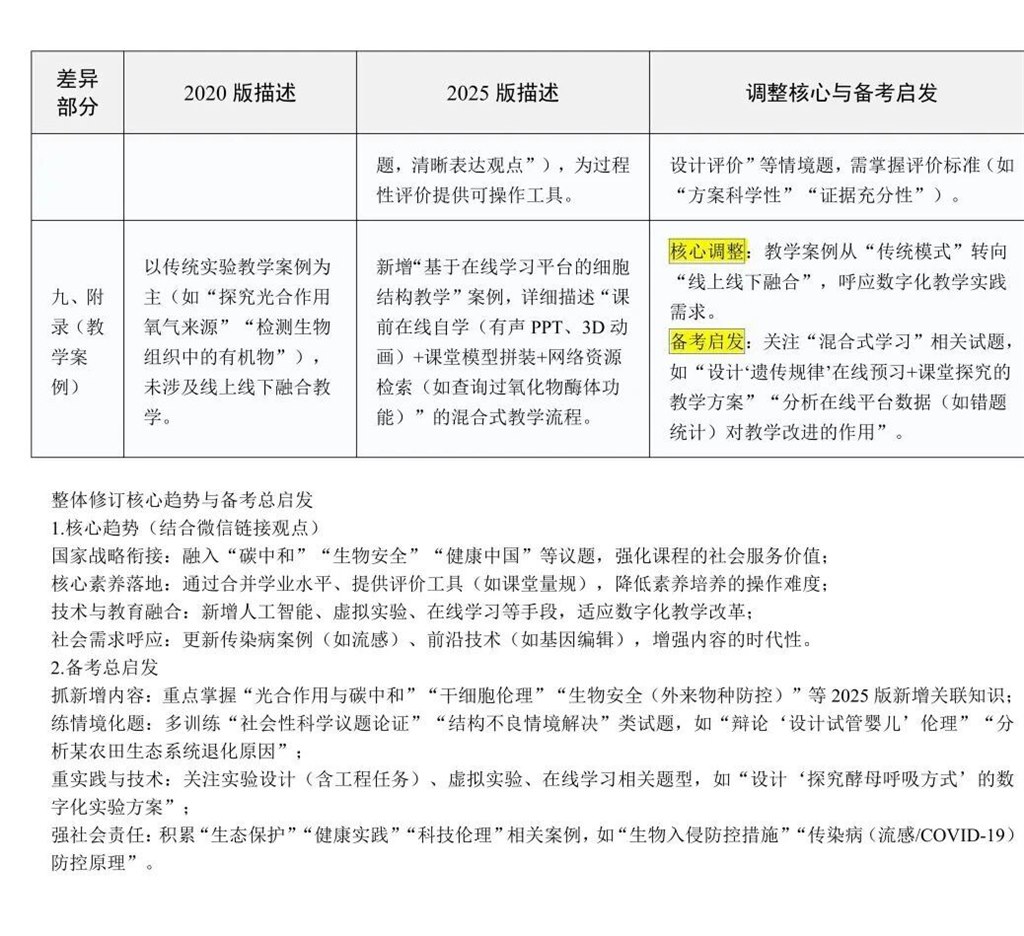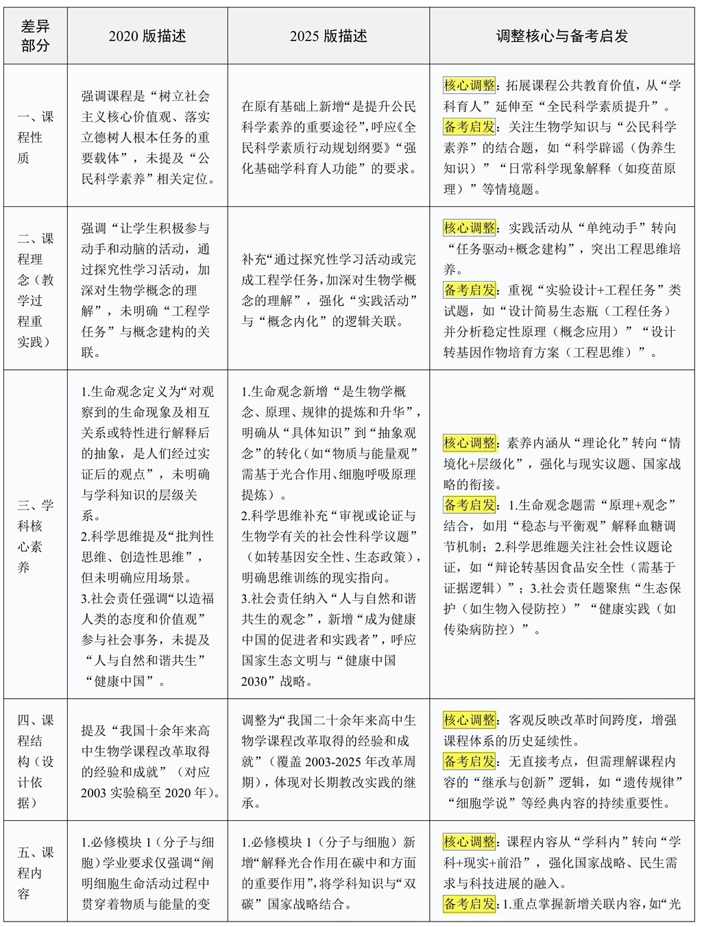 高中生物最新课程标准(2020版VS2025日常修订版)核心变化整理