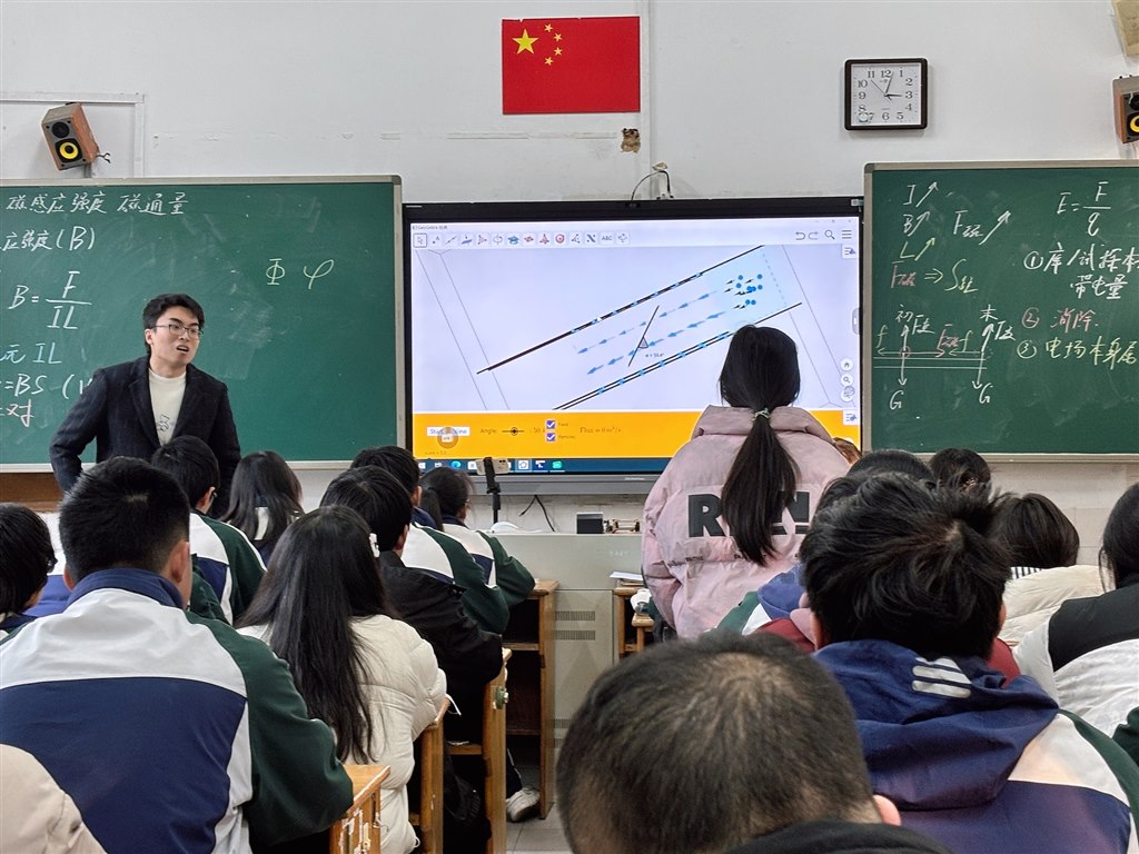 活动聚焦课堂实操,以《磁感应强度 磁通量》为统一课题,构建“示范引领+实践展示”的双课研讨模式。导师祝秋莹老师紧扣核心素养培养要求,精准把握高中物理概念教学的重难点,以生活化情境导入、逻辑性推导递进、具象化实验辅助,将抽象的磁感应强度定义、磁通量计算等知识点层层拆解,既注重知识的严谨传递,更关注学生科学思维、科学探究能力的培育。牵手学校钱睿老师结合本校学情优化教学设计,显著提升了学生的主体参与度,使课堂成为学生互动探究与协作学习的平台。