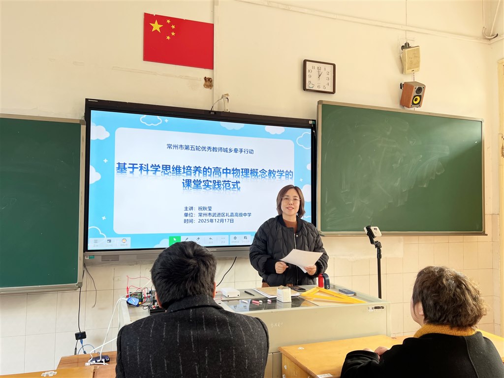为搭建城乡物理教研交流桥梁,赋能教师专业成长,筑牢基于核心素养的物理课堂教学根基,12月17日下午,高中物理优秀教师城乡牵手第三次活动在前黄实验高级中学如期开展。本次活动以课堂实践为抓手、专题讲座为引领,聚焦物理概念教学提质增效,为城乡物理教师搭建了互学互鉴、共促提升的优质平台。