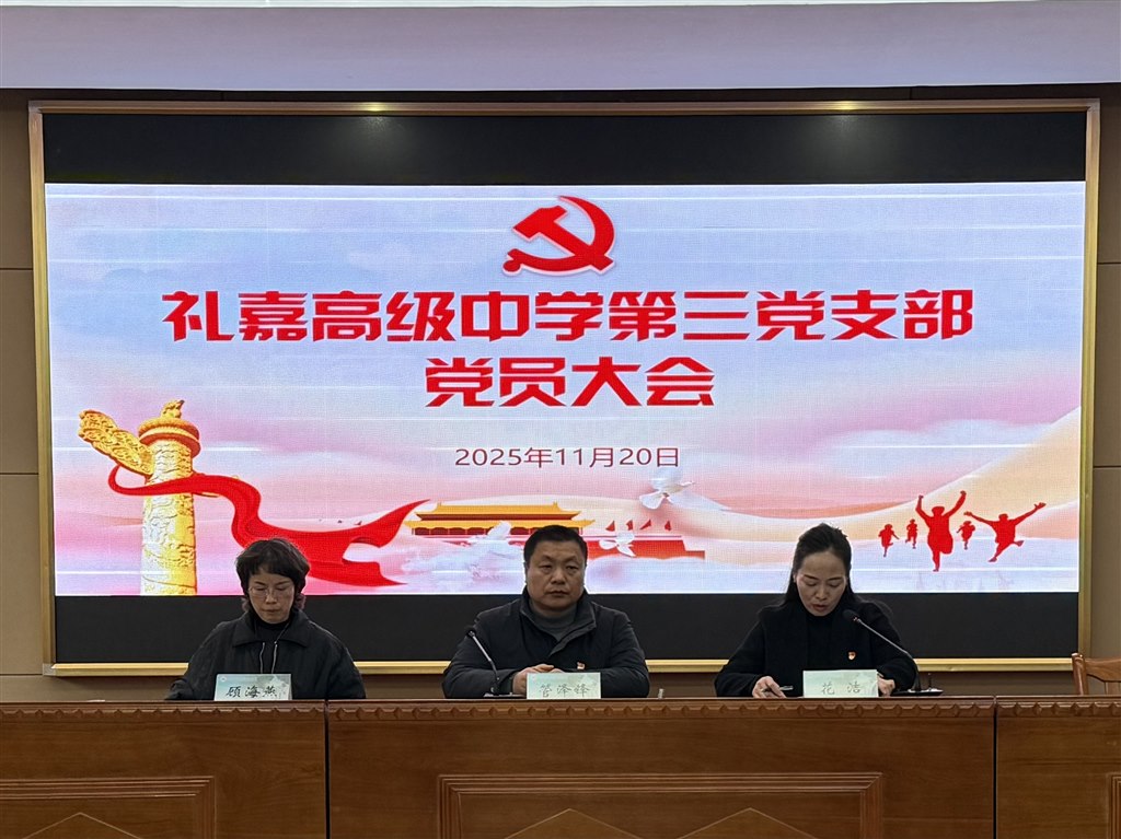 为扎实推进学习贯彻习近平新时代中国特色社会主义思想,深入学习宣传贯彻党的二十届四中全会精神,11月20日,礼嘉高级中学第三党支部开展了十一月份主题党日活动。会议由党支部书记管泽锋同志主持,全体党员参加本次活动。 花洁同志带领全体党员学习了思想之光照亮奋进之路——以习近平同志为核心的党中央引领中国经济社会高质量发展迈向新境界。顾海燕同志带领大家学习中国共产党第二十届中央委员会第四次全体会议公报。管泽锋同志带领大家学习传达学习党的二十届四中全会精神。 管泽锋书记作总结发言。他指出,本次主题党日活动内容丰富、重点突出,全体党员要以此次学习为契机,进一步深化思想认识、提升政治站位: 深化理论学习:各党员要持续深入学习习近平新时代中国特色社会主义思想、党的二十届四中全会精神及 “十五五”规划相关部署,通过个人自学、小组研讨等形式,做到学深悟透、融会贯通。 推动实践转化:结合教育教学实际,将学习成果转化为工作动力,党员教师要在课堂教学、班级管理、学困生帮扶、教学科研等方面发挥先锋模范作用。 加强宣传引导:利用班级群、校园公众号、主题班会等渠道,向学生和家长宣传党的最新理论和政策,特别是祖国统一、高质量发展等重要内容,营造浓厚的育人氛围。