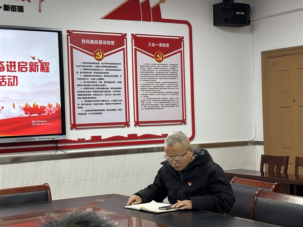 为扎实推进学习贯彻习近平新时代中国特色社会主义思想,深入学习宣传贯彻党的二十届四中全会精神,11月27日,礼嘉高级中学第一党支部开展了十一月份主题党日活动。会议由党支部书记潘少波同志主持,全体党员参加本次活动。 张佳佳同志带领全体党员学习了思想之光照亮奋进之路——以习近平同志为核心的党中央引领中国经济社会高质量发展迈向新境界。吴燕芬同志带领大家学习中国共产党第二十届中央委员会第四次全体会议公报。潘少波同志带领大家学习传达学习党的二十届四中全会精神。 潘少波同志作总结发言。他指出,本次主题党日活动内容丰富、重点突出,全体党员要以此次学习为契机,进一步深化思想认识、提升政治站位。 深化理论学习:各党员要持续深入学习习近平新时代中国特色社会主义思想、党的二十届四中全会精神及 “十五五”规划相关部署,通过个人自学、小组研讨等形式,做到学深悟透、融会贯通。 推动实践转化:结合教育教学实际,将学习成果转化为工作动力,党员教师要在课堂教学、班级管理、学困生帮扶、教学科研等方面发挥先锋模范作用。 加强宣传引导:利用班级群、校园公众号、主题班会等渠道,向学生和家长宣传党的最新理论和政策,特别是祖国统一、高质量发展等重要内容,营造浓厚的育人氛围。