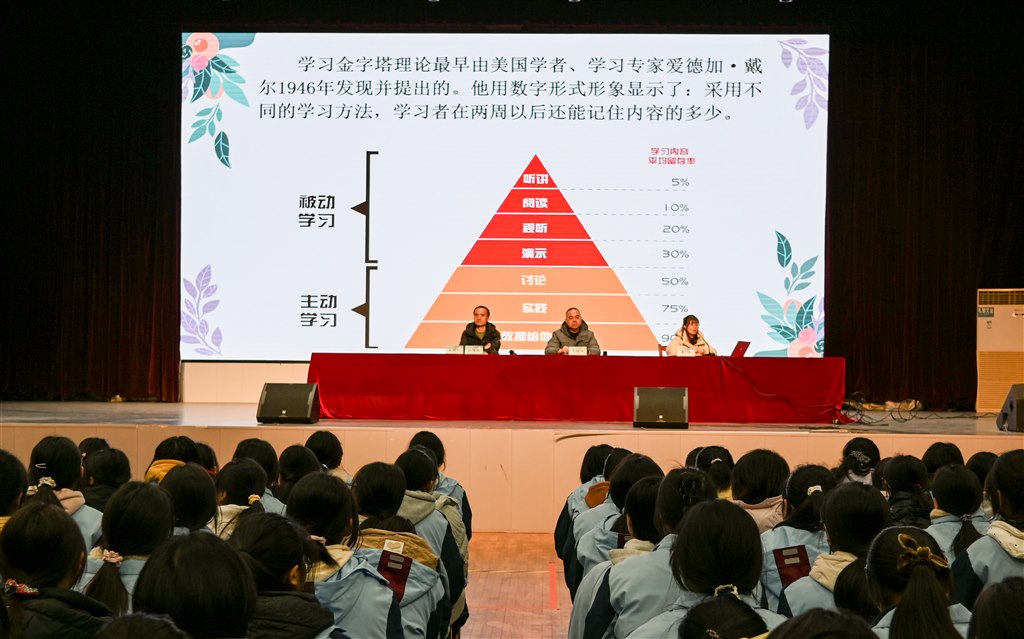 会议伊始,教学研究处曹兰主任为同学们带来了详尽的学情指导。她首先介绍了本学期的课程设置变化,包括早读时间的调整、大课间及午休的安排,并着重强调了选修学科的重要性,提醒同学们务必一视同仁,均衡发力。针对部分同学“努力但成绩上不去”的困惑,曹主任引入学习金字塔理论,强调主动学习的重要性;结合艾宾浩斯遗忘曲线,阐释了及时复习的必要性;并介绍了时间管理的四象限法则,引导同学们区分事情轻重缓急。此外,她还强调分享了高效学习技巧,如将信息分类整理的组块化学习、合理设定短期目标、利用碎片时间、坚持体育运动以及保证充足睡眠,为同学们提升学习效能指明了路径。